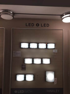 LED’s (Light-Emitting Diodes) are the number one choice and are offered in bathroom lighting, exterior lighting; in fact all lighting fixtures. If the fixture itself doesn’t have an LED module, then you have the option of incandescent, fluorescent or LED bulbs. LED’s are energy efficient and an excellent choice. Natural materials such as elm wood and stone are being used in fixtures to create an old world and rustic look. The design is chic and sleek and the addition of Edison (vintage) bulbs adds the perfect industrial style feel. Our showroom will certainly feature these new great looks and more. Come visit us!